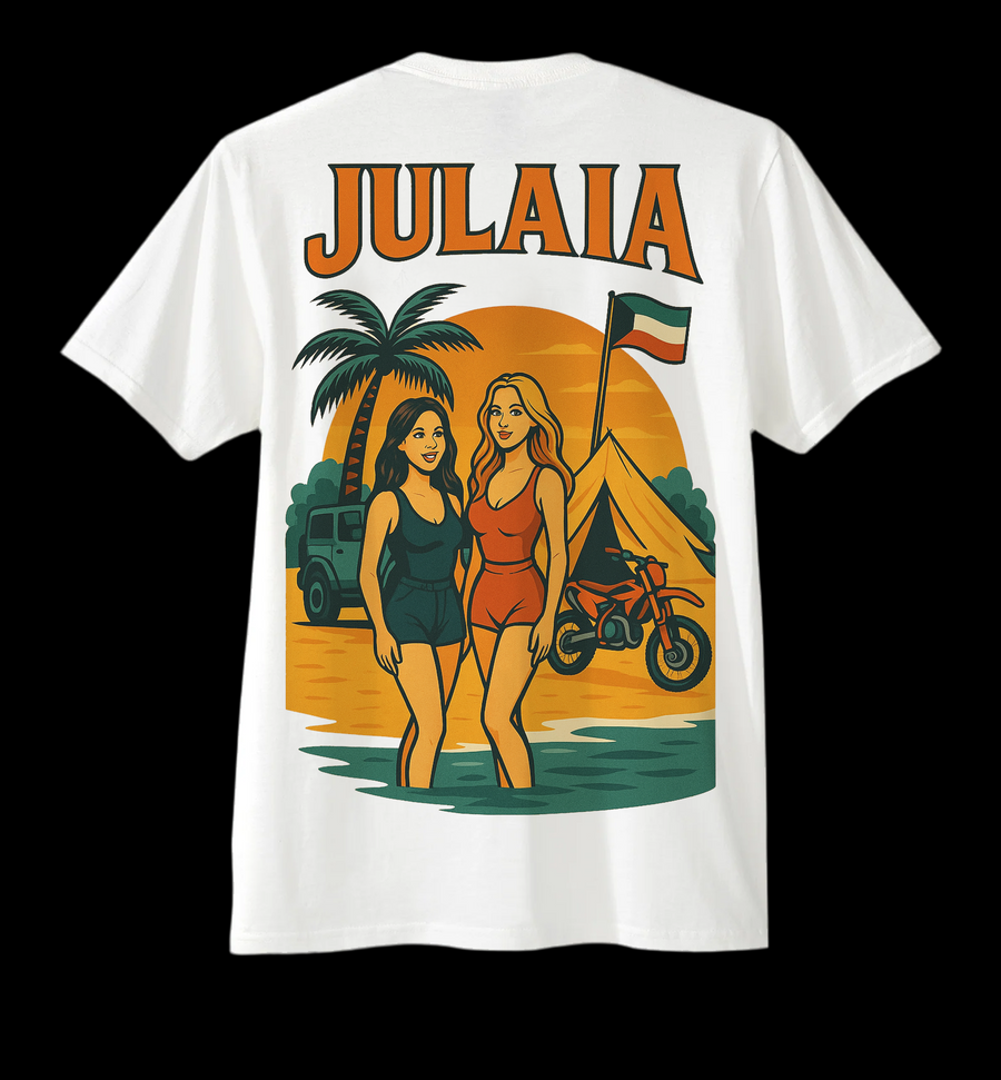 DriftDynasty’s Julaia Beach Camp tee brings the coastal scene to life — beach tents, roaring engines, and golden-hour memories. Designed for the ones who chase sunsets with their crew, this shirt captures the laid-back yet loud vibe of Julaia weekends. Sand, sound systems, and real Kuwaiti beach culture — all in one drop.